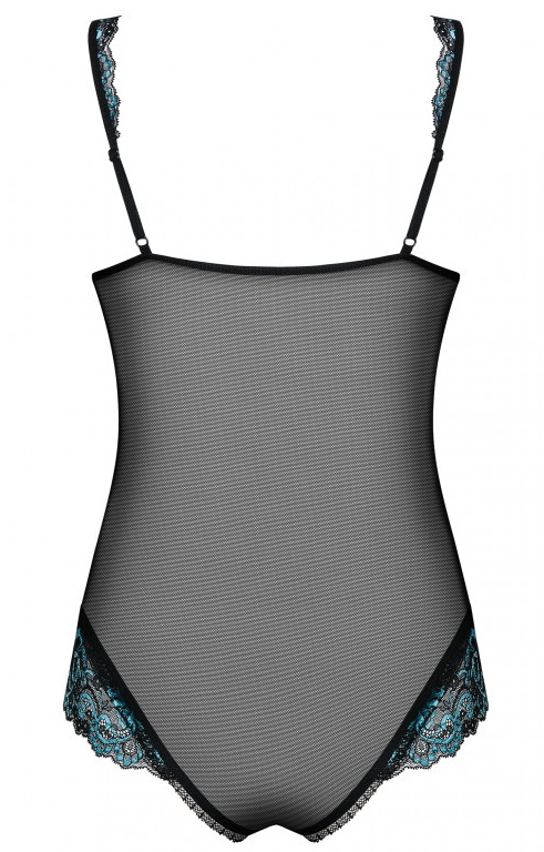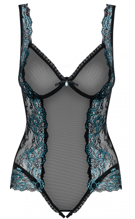 Бирюзовое кружево идеально подчеркивает женские изгибы, а манящий страз под бюстом привлекает внимание.