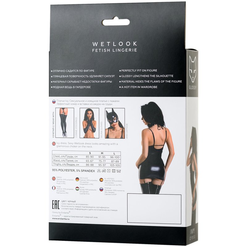 Новая коллекция белья Glossy из популярного материала Wetlook – черное блестящее платье Ivy!