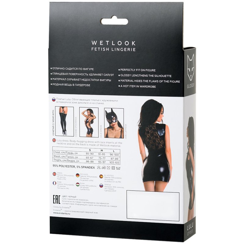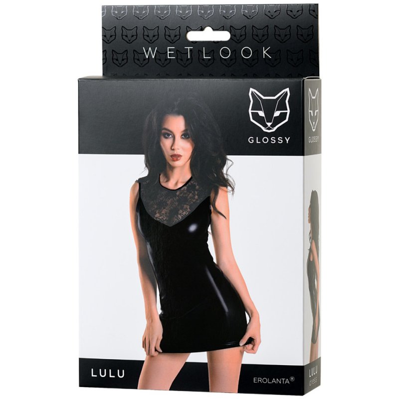 Glossy. Блестящее черное платье Lulu из материала Wetlook с кружевными