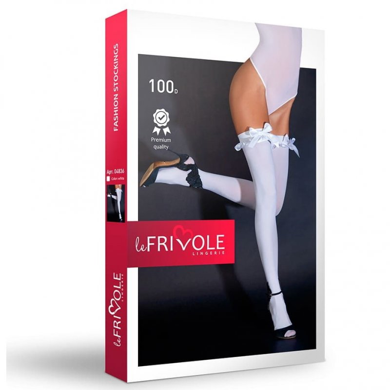 Спереди чулочки украшены милыми атласными бантиками белого цвета