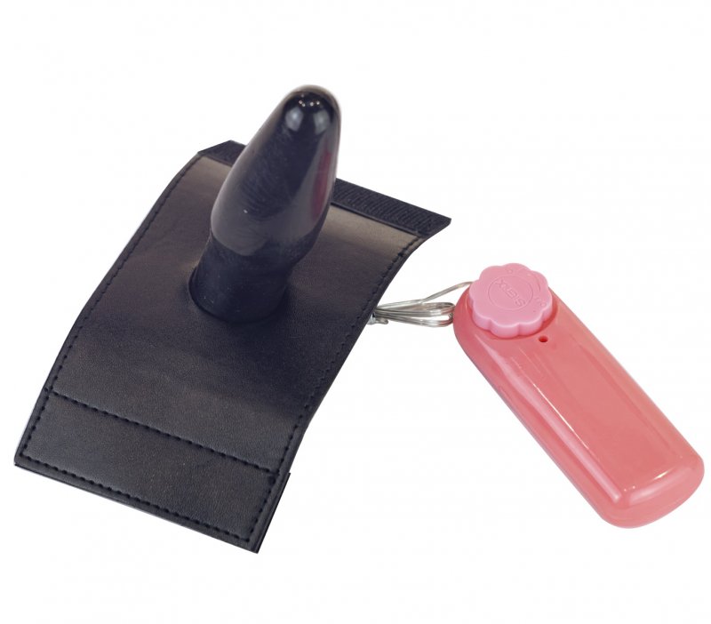 В комплекте идет анальная пробка черного цвета, которая крепится в трусики при помощи липучки, она легко снимается, поэтому ее можно использовать как анально, так и вагинально.