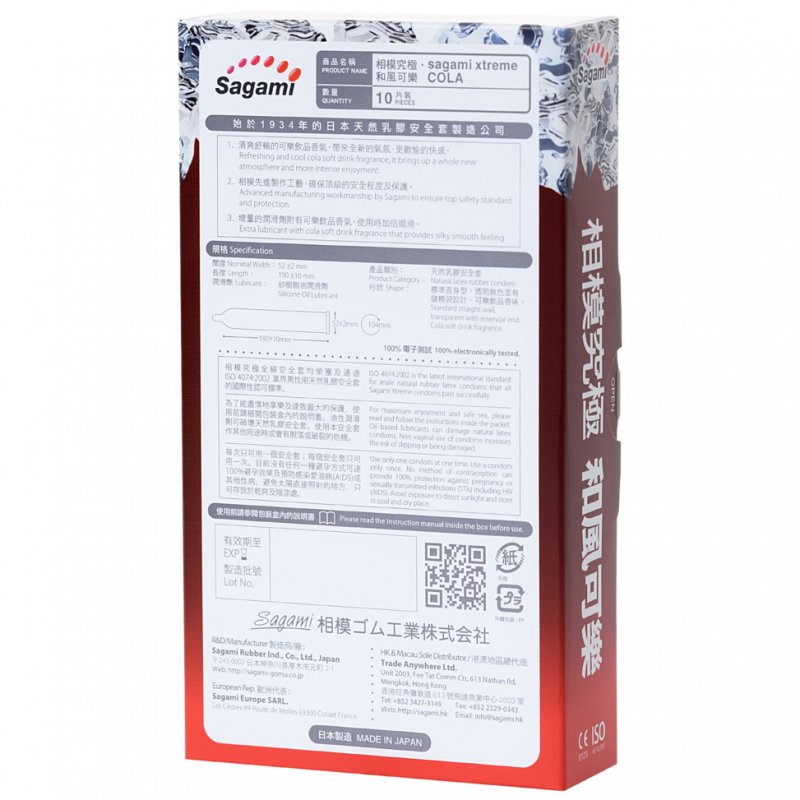 Sagami Xtreme Cola - латексные ультратонкие презервативы с ароматом колы. Ультратонкая толщина стенок (0,04 мм) этих латексных презервативов делает их использование более комфортным и незаметным и способствует большей естественности ощущений. Для любителей газировки и природных ощущений. Сделайте ваш половой акт более «вкусным» с Sagami Xtreme Cola!