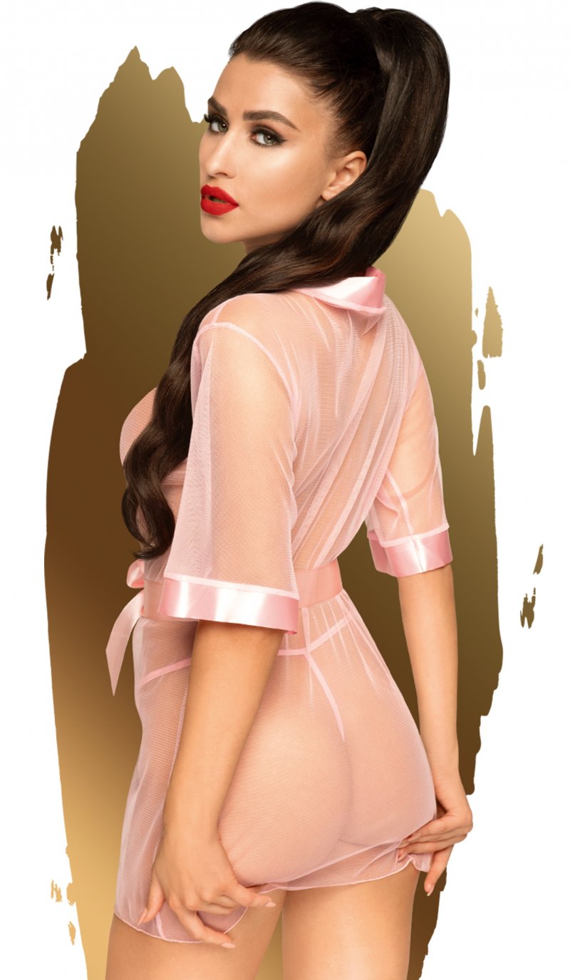 Пикантный халатик с атласными вставками отлично подойдет для страстных игр в спальне.