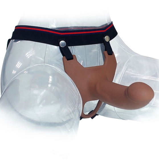 Пустотелый фаллопротез коричневого цвета с регулируемыми ремешками - позвольте себе не сомневаться в своих силах!