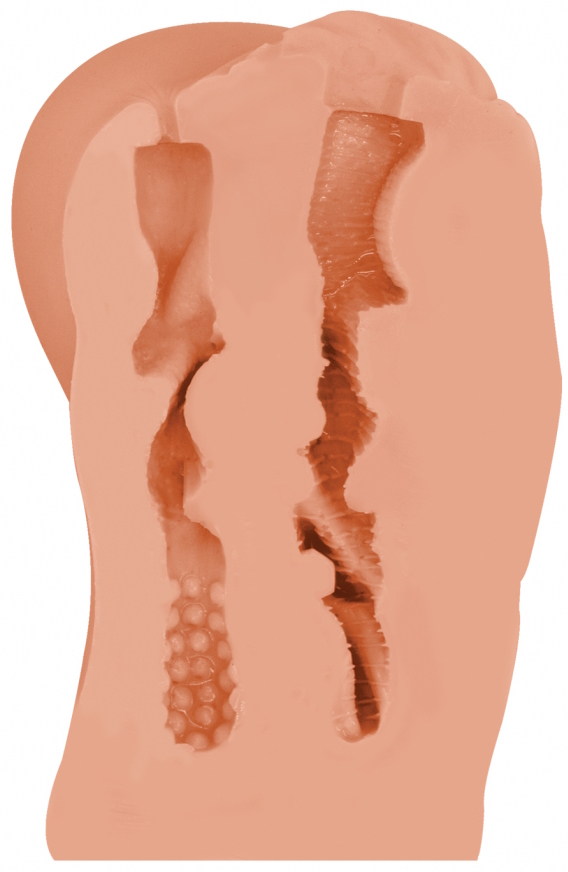 Он выполнен в виде двух любовных отверстий: женской вагины и узенького ануса.