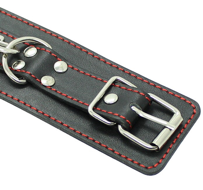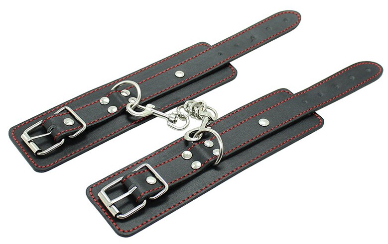 Металлическая фурнитура обеспечивает качественную фиксацию. Наручники соединяются между собой цепью с карабинами, благодаря чему обеспечивается достаточно жесткая сцепка.