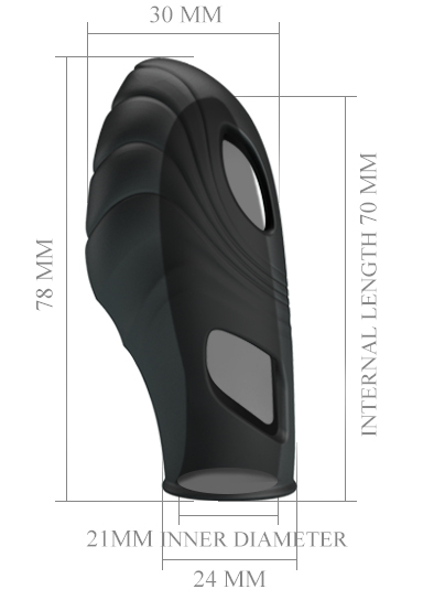 Размеры: общая длина 7,8 см, длина внутреннего канала 7 см, максимальная ширина 3 см, внутренний диаметр 2,4 см