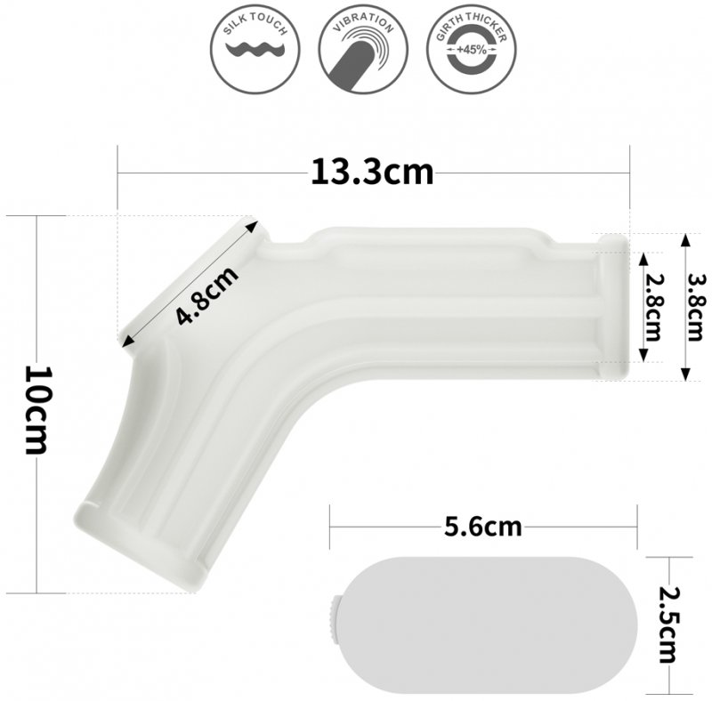 Размеры: внутренний диаметр насадки - 2,8 см, внешний диаметр - 3,8 см; длина части насадки на пенис - 13,3 см, длина части насадки на мошонку - 10 см
