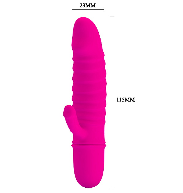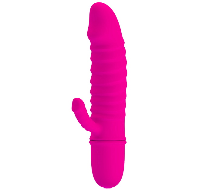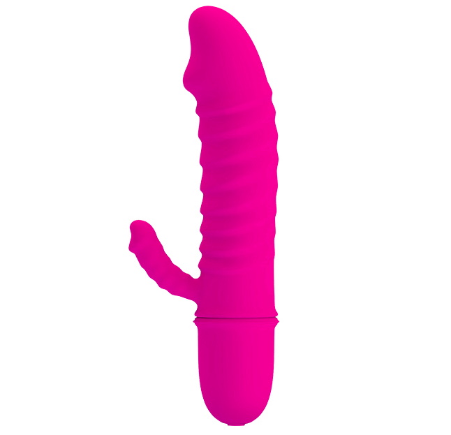 Мини-вибратор имеет 2 отростка - 1 для вагинальной, и 1 для клиторальной стимуляции.