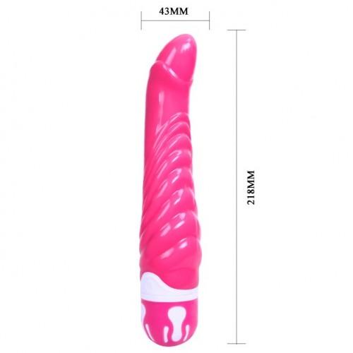 Вибратор имеет загнутую головку и выраженный рельефный рисунок по всей длине.