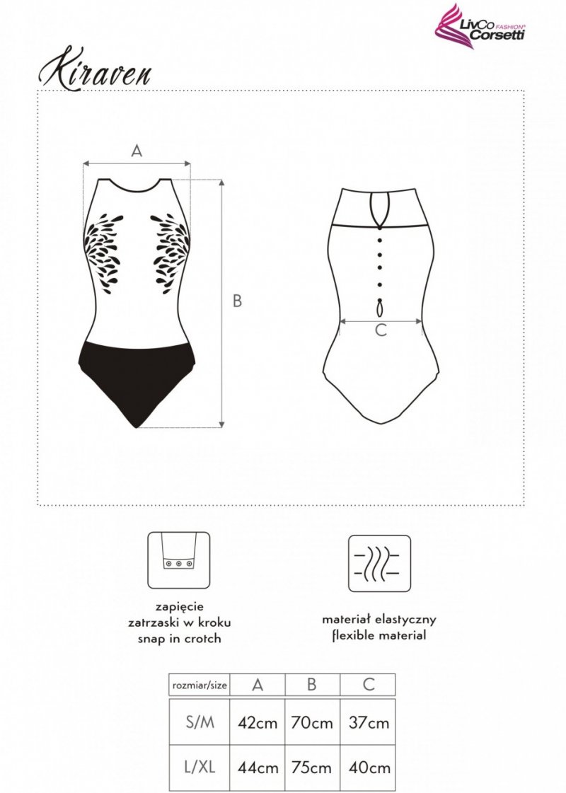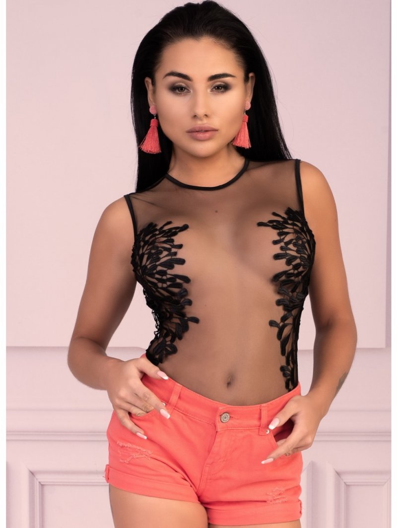 Передняя часть боди украшена кружевом, обвивающим грудь, что придает ей элегантный вид и подчеркивает чувственный характер самого наряда.