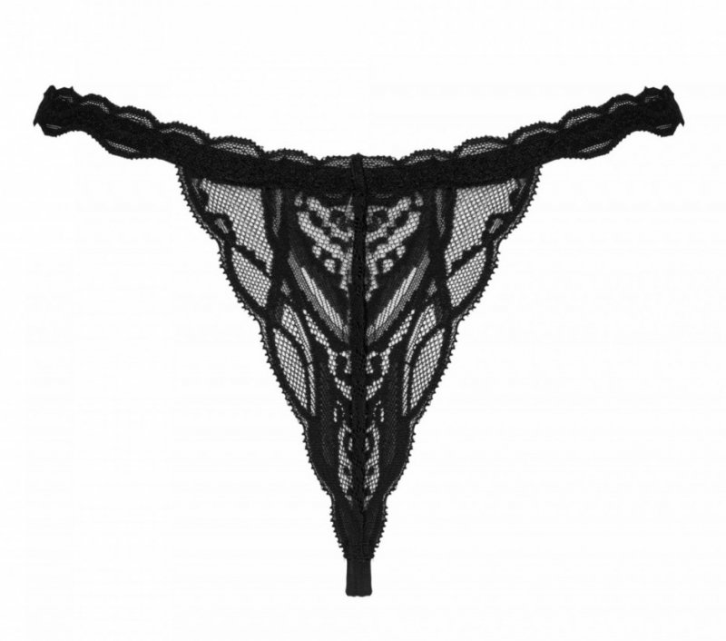 Их задняя часть выполнена из прозрачного материала с цветочным кружевом, а передняя часть прикрыта лишь замысловатой шнуровкой.