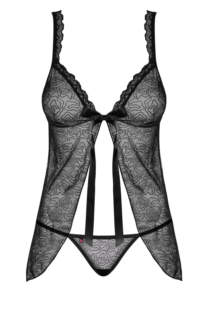 Сексуальный беби-долл выполнен из приятной черной прозрачной сетки с красивым декором.