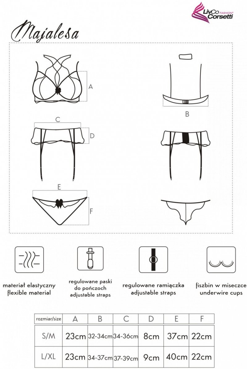 Идеальное сочетание соблазнительного и максимально комфортного белья: в комплект входит лиф, трусики-стринги и пояс для чулок.