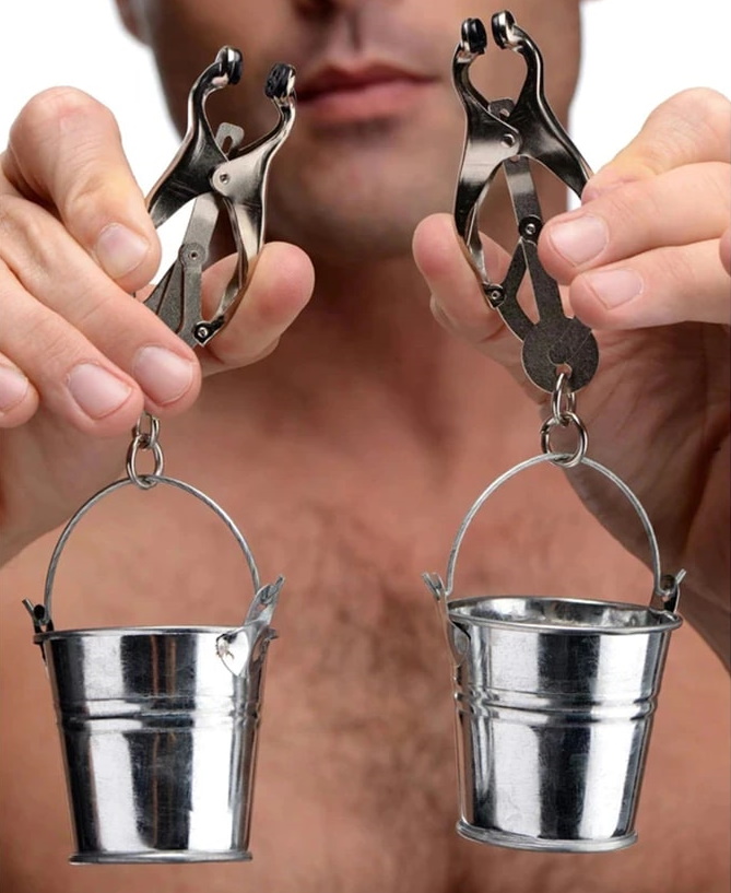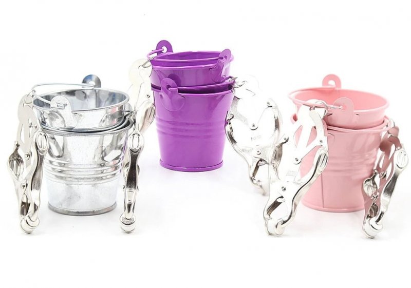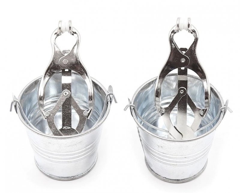 Ведерки, которые прикреплены к зажимам, позволят расширить круг воплощаемых фантазий - Вы сможете положить в них дополнительные утяжелители, чтобы еще больше обострить ощущения.