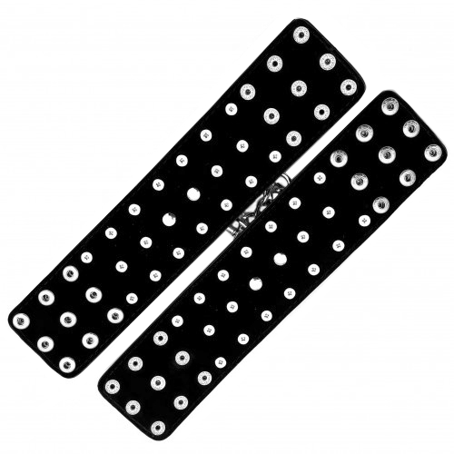 Размер браслетов широко регулируется при помощи заклепок, что позволяет подобрать комфортный обхват как на женское, так и на мужское запястье.