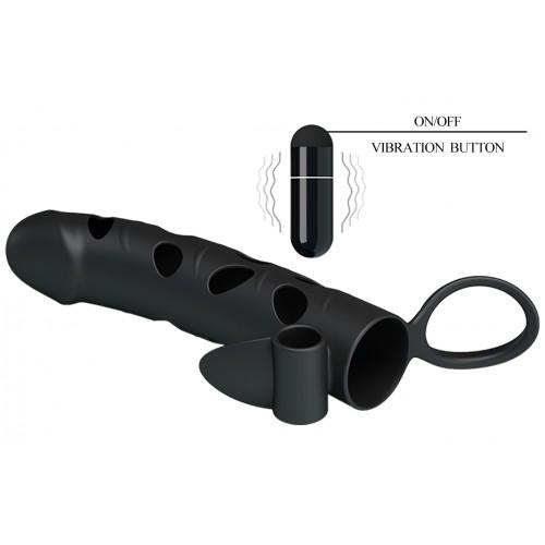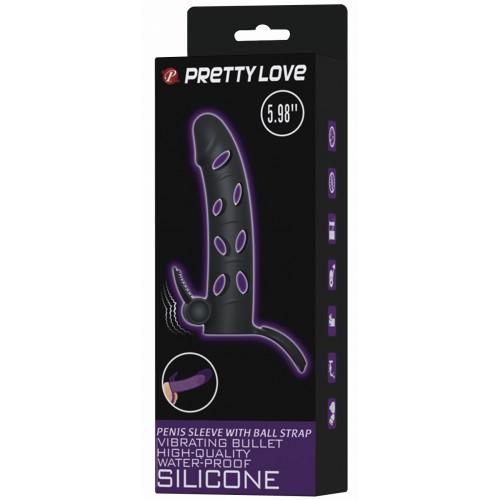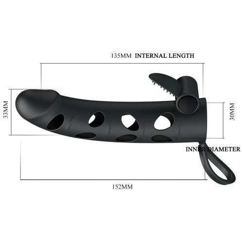 Cиликоновая насадка на пенис Pretty Love Penis Sleeve c клиторальным стимулятором и петлей под мошонку – потрясающая находка для любителей оригинальных секс-игрушек!