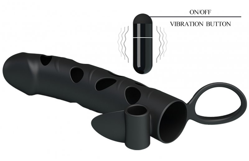 Cиликоновая насадка на пенис Pretty Love Penis Sleeve c клиторальным стимулятором и петлей под мошонку – потрясающая находка для любителей оригинальных секс-игрушек!