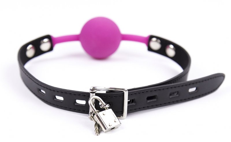 Кляп невозможно выплюнуть, он надежно фиксируется при помощи ремешка, который регулируется с помощью пряжки и фиксируется замочком - так Ваш партнер никогда не сможет снять кляп без разрешения.