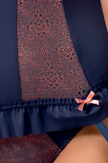 Синий корсет Cheyenne таит в себе небольшой секрет – широкие вертикальные полосы делают женщину выше, талию – уже, а фигуру – стройнее.