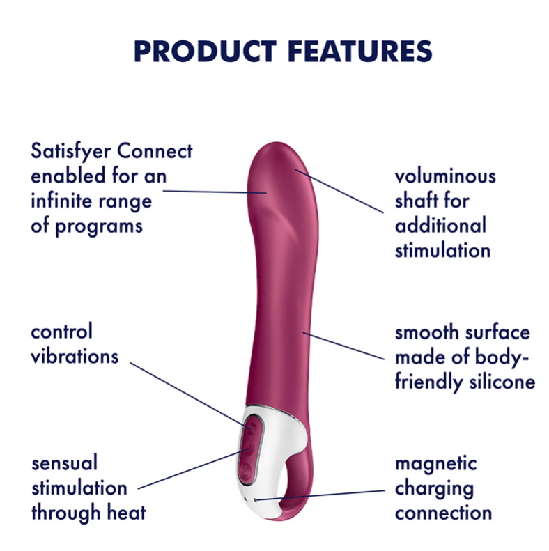 Satisfyer Big Heat представляет собой идеальное сочетание сильного мотора, нагрева до температуры в 39 градусов и высококачественного упругого медицинского силикона!