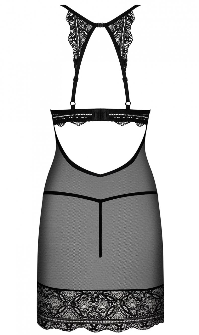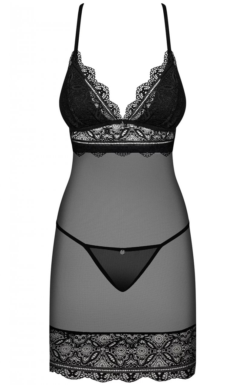 Посмотрите, какая она замечательная: кружевные чашки с манящим дизайном, великолепно подчеркнутая грудь, небольшой ювелирный стразик прямо в области бюста и... манящая ткань, не скрывающая Ваши формы, а прячущая их под тонкой вуалью.