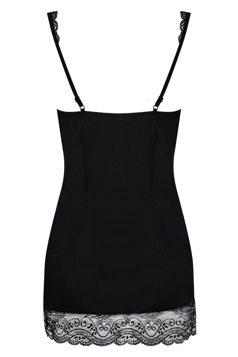 Детали: исключительно женственная сорочка с блестящими украшениями, ажурная отделка красиво подчеркивает вырез, регулируемые лямки - гарантия идеальной посадки, простой, свободный крой - полный комфорт при ношении, разрез на бедре и кружево по низу сорочки - сексуальные детали, блестящие камушки на вырезе и по низу платья - деталь, которая понравится каждой женщине, деликатные, приятные на ощупь ткани, простые черные трусики в комплекте.