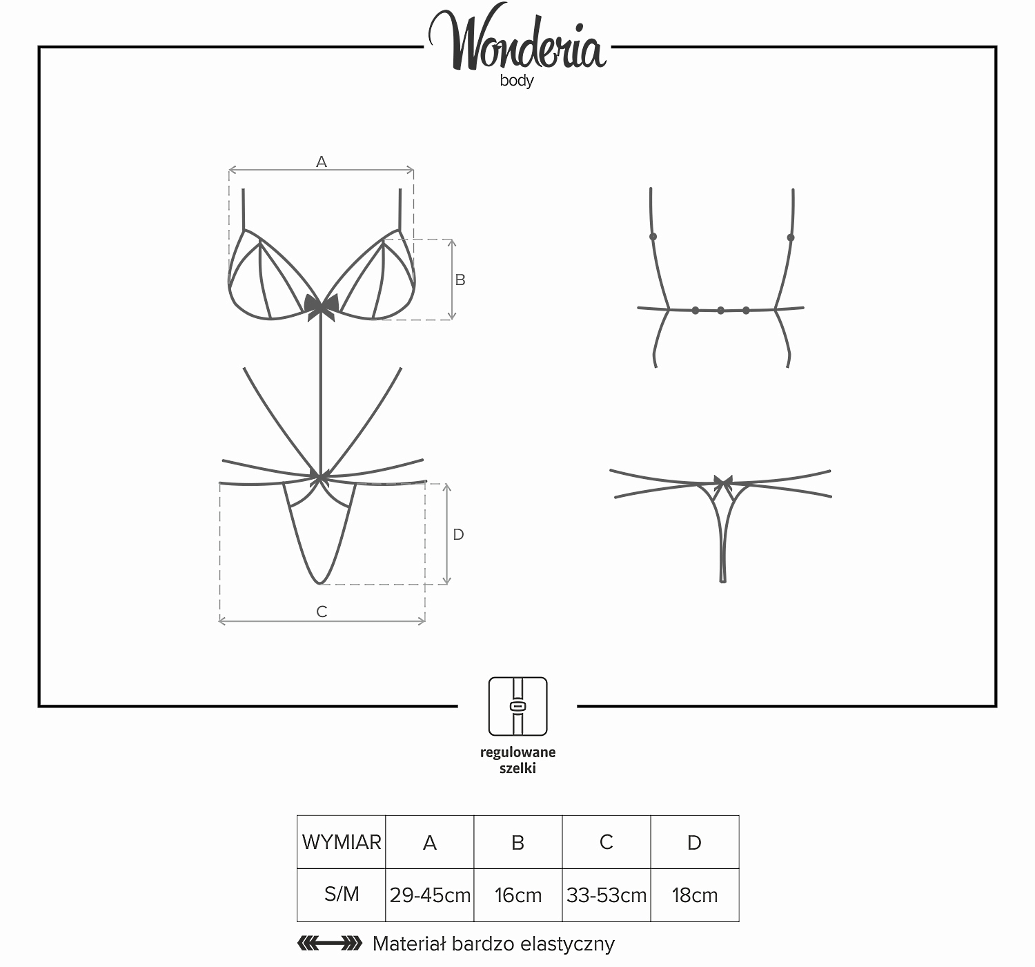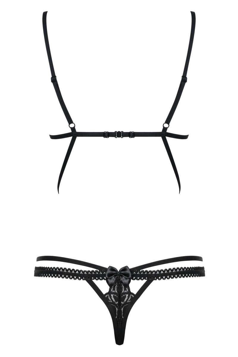Детали: уникальное боди из красивого кружева и эластичных бретелей, идеально подходящий крой, регулируемые лямки для максимального комфорта, изящный кружевной бюстгальтер очаровательного фасона, декольте украшено кружевными полосками - невероятно соблазнительный вид бюста, очаровательный бантик между чашками, под животом и над ягодицами - кокетливые детали, эластичные бретели, которые обхватывают талию, живот и спину - необычное сочетание бюстгальтера и трусиков, нижняя часть боди состоит из стрингов из нежного кружева и соблазнительных декоративных резинок, приятные на ощупь, эластичные ткани.