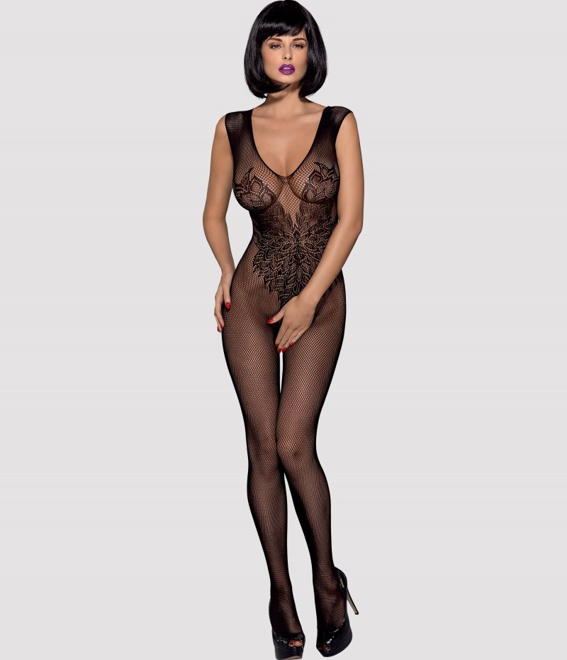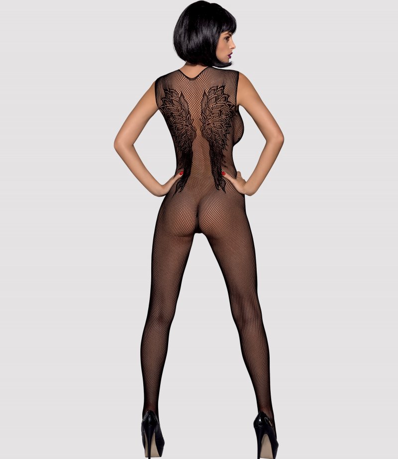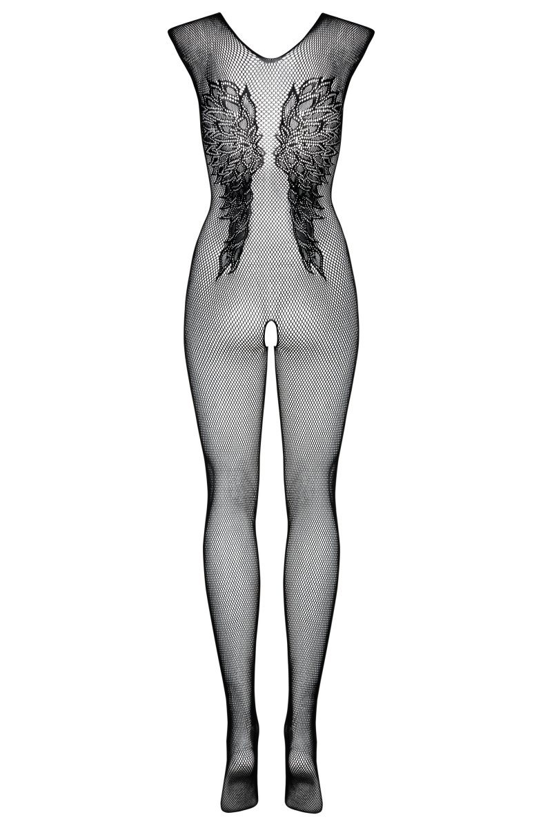 Детали: чувственная, черная сетка - феноменально облегает тело, манящее глубокое декольте, интересные узоры спереди, мотив крыльев на спине, открытая промежность, мягкий, очень эластичный трикотаж.