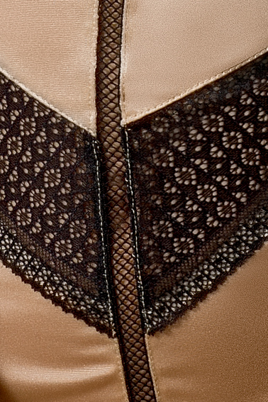 Облегающая сорочка выполнен из эластичного сатина и изящного кружева. Сорочка плотно прилегает к телу, элегантно подчеркивая его естественные изгибы. Чашечки усилены косточками, а стрелочка заставляет взгляд скользить ниже и ниже, пробуждая самые смелые фантазии. Трусики-стринги в комплекте.