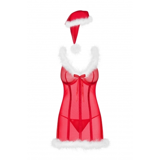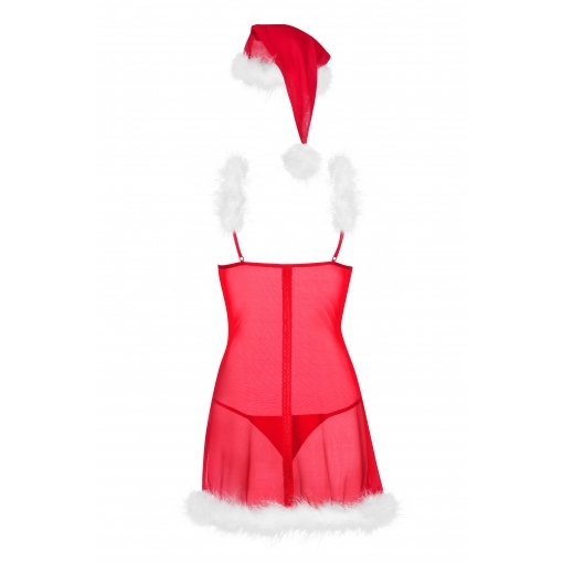 В комплект входит: сорочка, трусики-стринги, колпак.