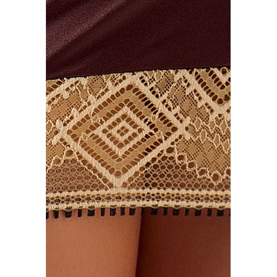 Неожиданным и очень эротичным дополнением сорочки служит кружевная вставка по подолу, которая сзади большей частью переходит на ягодицы, приоткрывая сквозь кружево Вашу попку и интригует атласным бантиком сверху.