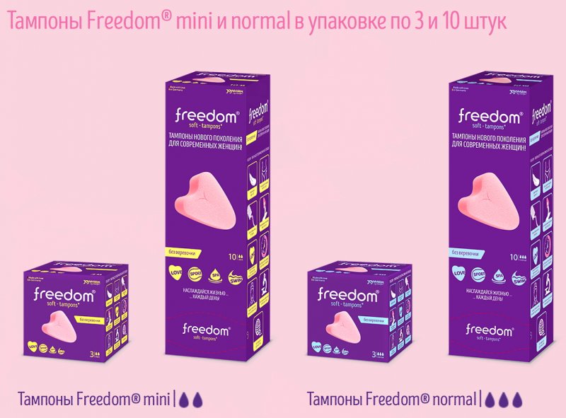 Тампоны Freedom от немецкого бренда JoyDivision обеспечивают не только надежную защиту от выделений в критические дни, но и дают возможность не отказываться от своих обычных увлечений и планов!