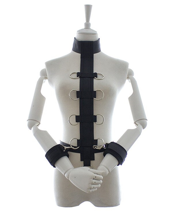 Бондажный ремень совмещён с ошейником и фиксаторами для рук, поэтому прекрасно подойдёт как начинающим, так и опытным практикам субкультуры БДСМ!
