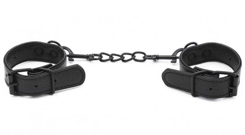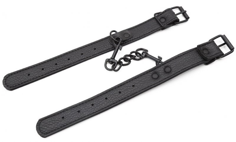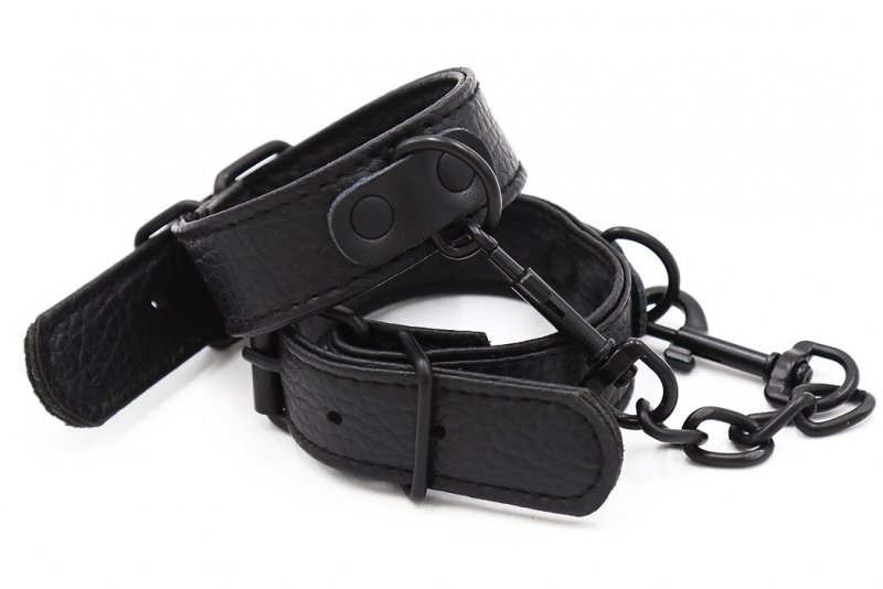 Металлическая фурнитура обеспечивает качественную фиксацию. Наручники соединяются между собой цепью с карабинами, благодаря чему обеспечивается достаточно жесткая сцепка.
