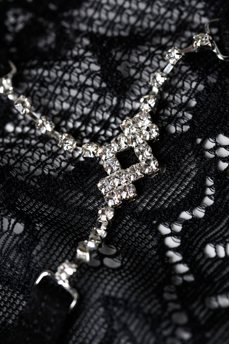 Элегантные кружевные трусики с изящной деталью на одной из лямок - подчеркнет вашу индивидуальность. Тонкие, мягкие лямочки и хлопковая ластовица обеспечат комфортные ощущения. Ниспадающие нити из страз создают сексуальный и игривый образ.