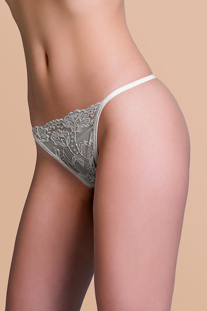 Элегантные кружевные трусики с изящной деталью на одной из лямок - подчеркнет вашу индивидуальность. Тонкие, мягкие лямочки и хлопковая ластовица обеспечат комфортные ощущения. Ниспадающие нити из страз создают сексуальный и игривый образ.