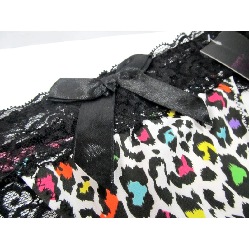 Впечатляющие эластичные трусики-тонг с низкой посадкой, на широкой ажурной резинке, украшены привлекательным принтом.