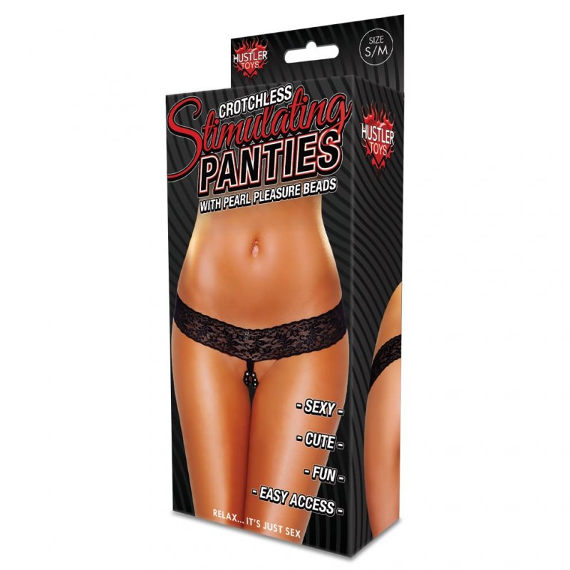 Трусики-тонг с открытой передней частью и стимулирующими 12-ми бусинками на резинке.