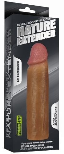Удлиняющая насадка на пенис Revolutionary Silicone Nature Extender мулат + 4 см