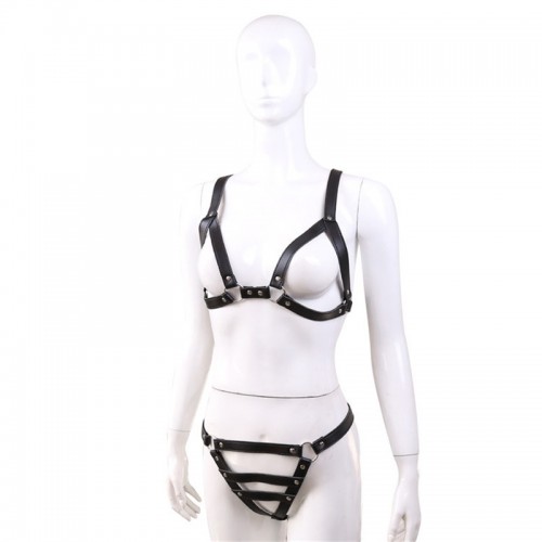 Лиф и трусики состоящие из ремней, создают образ властной госпожи - такой доступной и в то же время откровенно сексуальной.