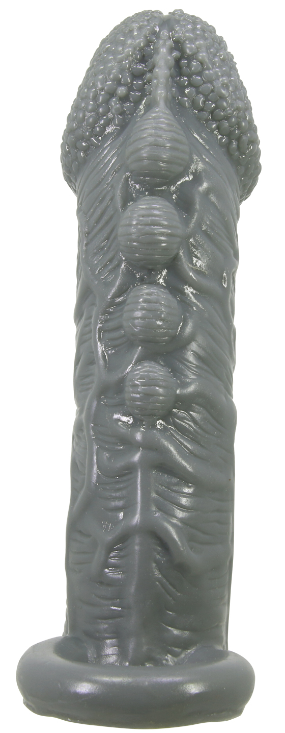 Форма насадки выполнена в виде реалистично-футуристичного пениса, с ярко-выраженной головкой, рельефными точками и венками по стволу. Мягкая текстура с точечными вкраплениями усиливает ощущение.