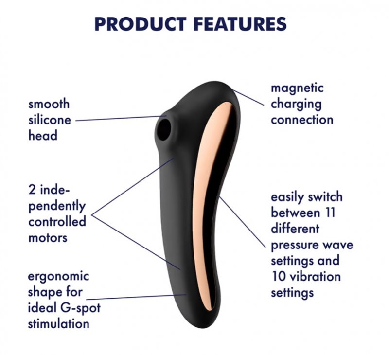 Satisfyer Dual Kiss будет баловать Вас 110 комбинациями под любое настроение! Нет никакого сомнения, что многие из них превратят пользование стимулятором в самое яркое эротическое приключение.