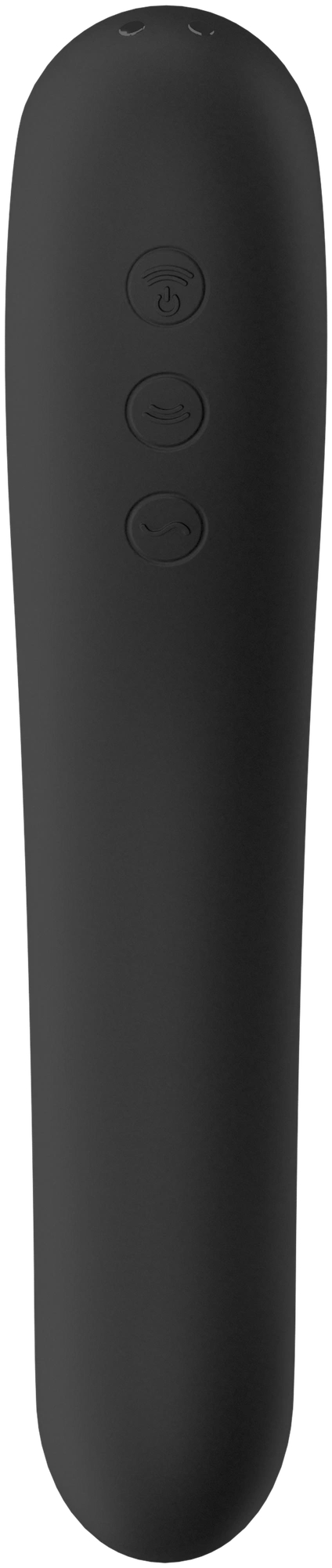 - Satisfyer Dual Kiss имеет два мощных моторчика, которые работают почти бесшумно, чтобы не отвлекать от важного процесса, позволять заниматься самоудовлетворением в самых неожиданных местах. Последнему способствуют и небольшие, компактные размеры игрушки.