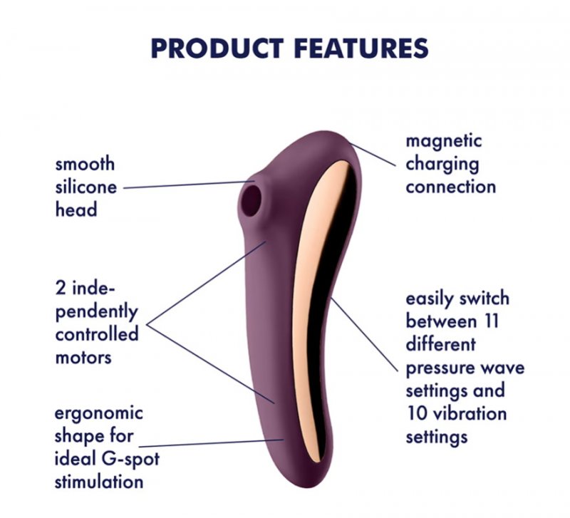 Satisfyer Dual Kiss будет баловать Вас 110 комбинациями под любое настроение! Нет никакого сомнения, что многие из них превратят пользование стимулятором в самое яркое эротическое приключение.