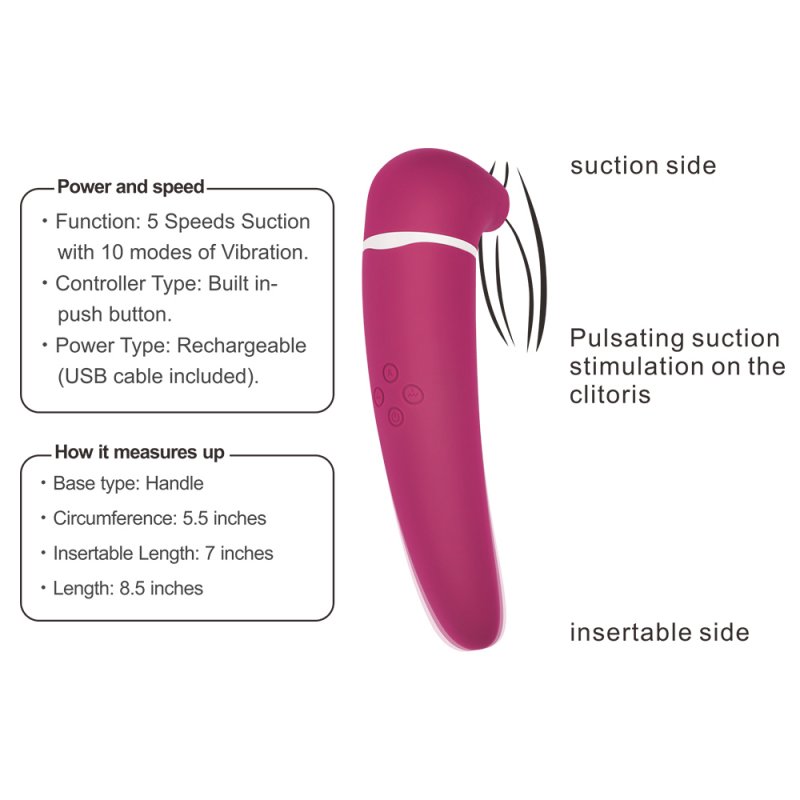 Стимулятор имеет 10 различных режимов вибрации и 5 скоростей всасывания.
