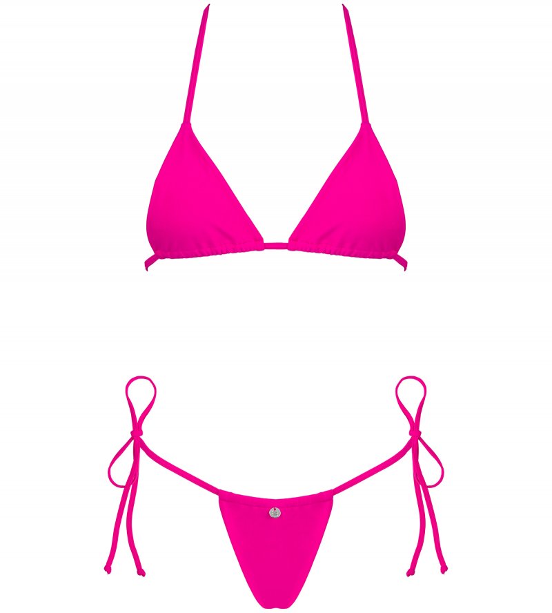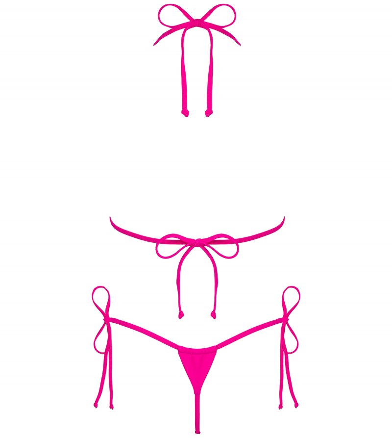 Розовое микро-бикини раскроет все достоинства женского тела и подчеркнет фигуру, а яркий оттенок розового будет идеально контрастировать с цветом загара.