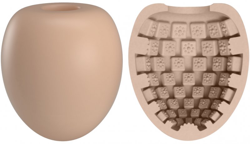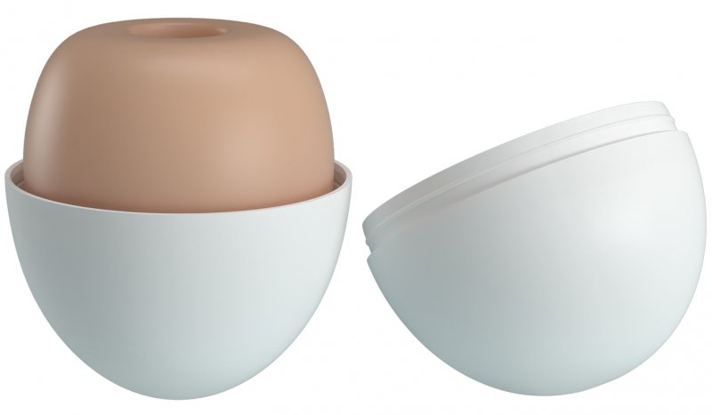Освободите яичко из футляра, добавьте внутрь несколько капель смазки, погрузите головку в отверстие, а после - натяните мастурбатор на всю длину пениса, даже если он размера XL!