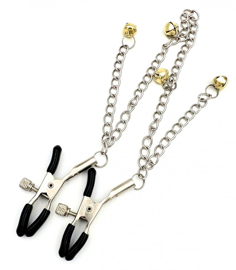 Эти зажимы для сосков не только доставят удовольствие своей владелице, но и невероятно возбудят ее партнера. Еще бы, ведь они украшены цепочкой и бубенчиками яркого цвета!