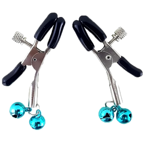 Зажимы для сосков с двойными голубыми бубенчиками